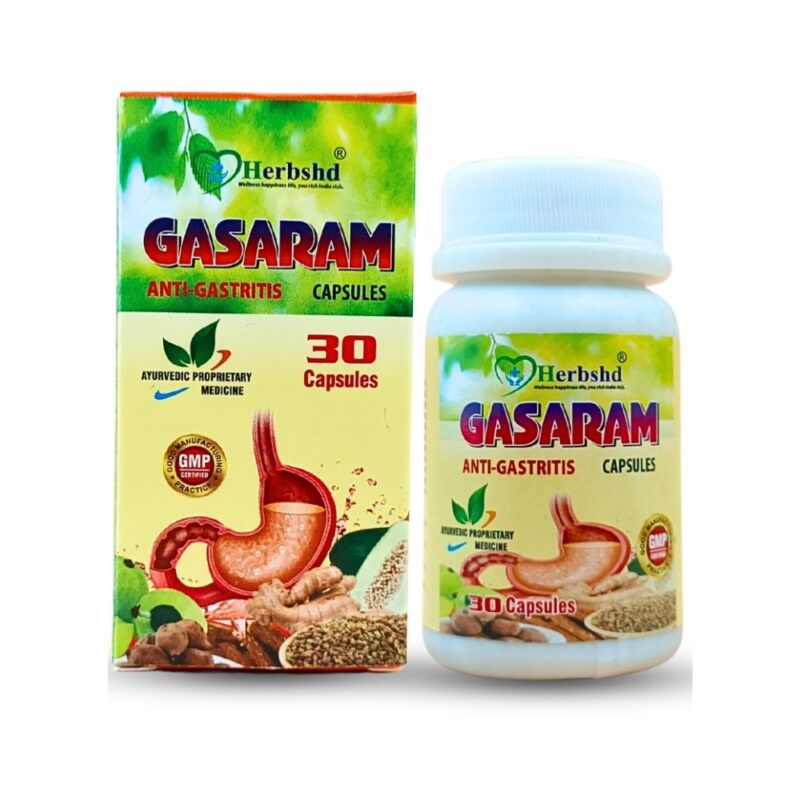 Gasaram anti-gastritis capsule is a great remedy for stomach ailments, it is a modern Ayurvedic formula medicine used for your digestive health, these capsules are made with natural ingredients like herbs and spices known to benefit digestive problems. gasaram capsule It relieves your stomach irritation, nausea, stomach ache, constipation, heartburn, acidity, flatulence, indigestion, stomach ulcer etc. instantly and improves digestion and makes food palatable.