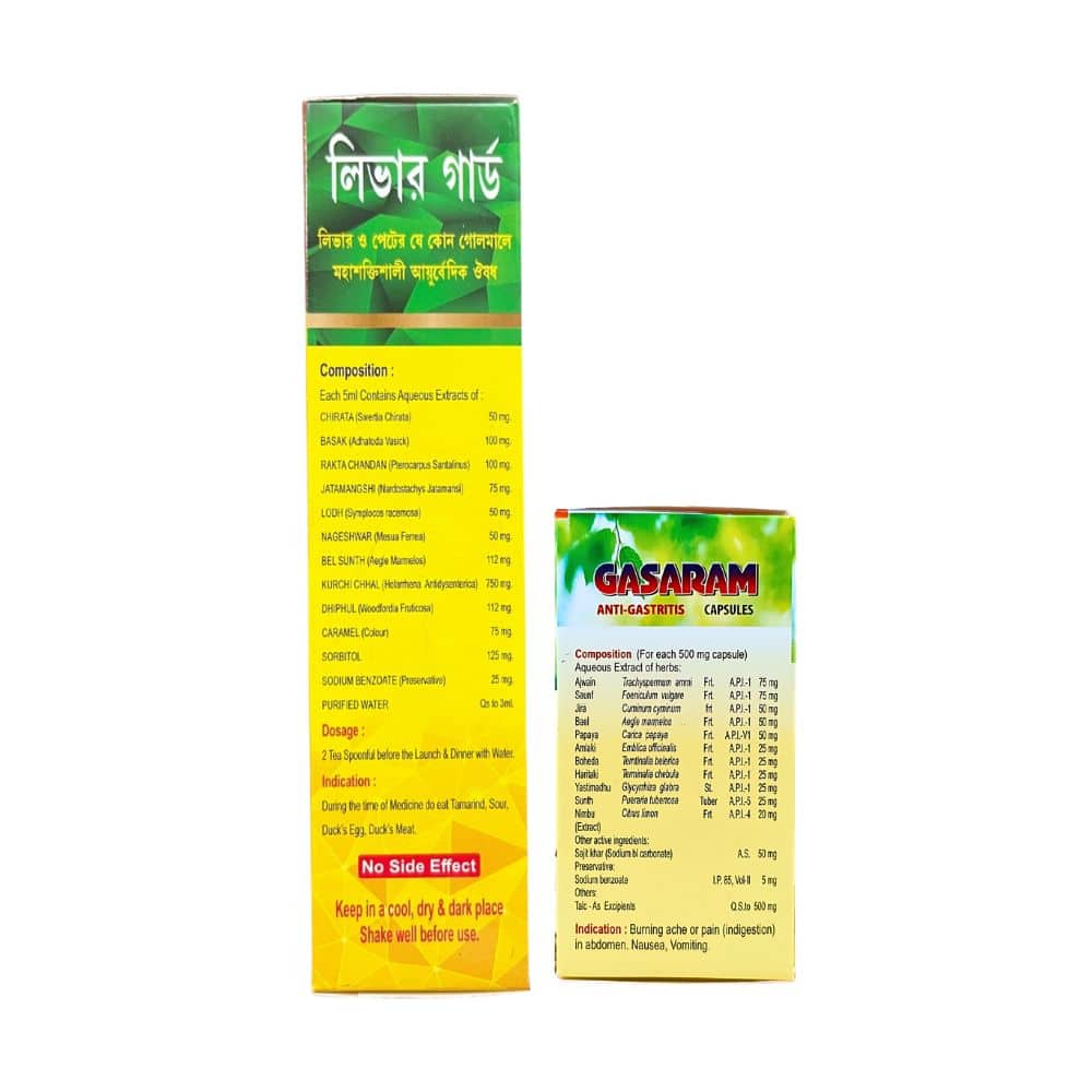Ayurvedic Liver Guard Tonic & Gasaram capsule for Liver Care these capsules are made with herbal natural ingredients . It relieves your stomach irritation, nausea, stomach ache, constipation, heartburn, acidity, flatulence, indigestion instantly and improves digestion .