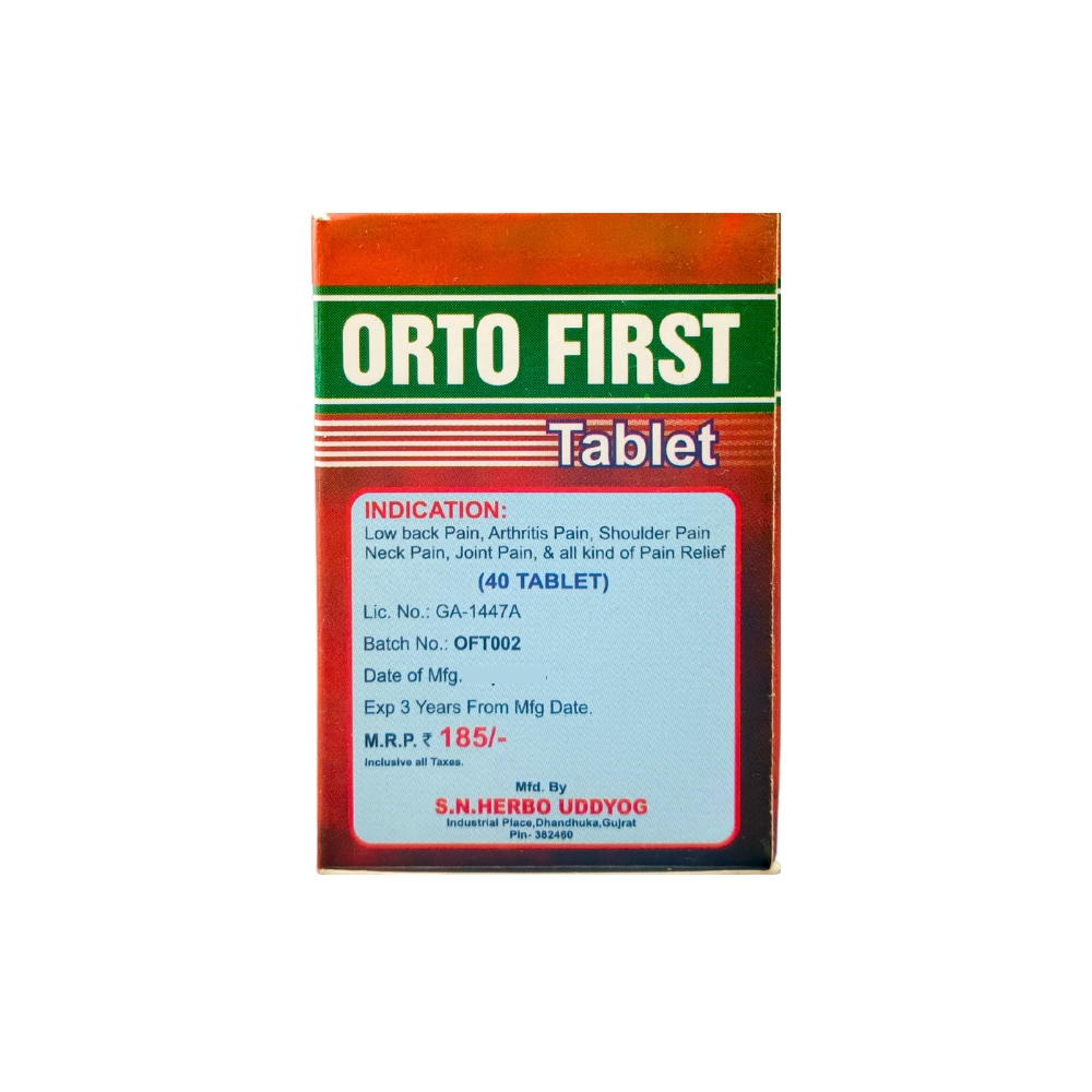 Ayurvedic Orto First Tablet For Joint Pain Relief This capsule gives excellent results in Low back Pain, Arthritis Pain, Shoulder Pain Neck Pain, & all kind of Pain Relief. It is a very good pain reliever medicine and this medicine has no side effects. You can eat it throughout the year without hesitation.
