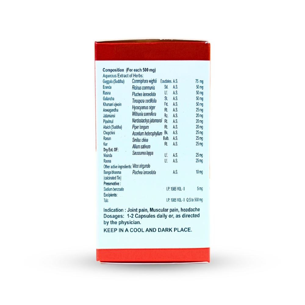 Guggulu, eranda, rasna, gulancha, khursani ajwain, aswagandha, jatamansi, pipulmansi, ataich, chopchini, rasun, kur