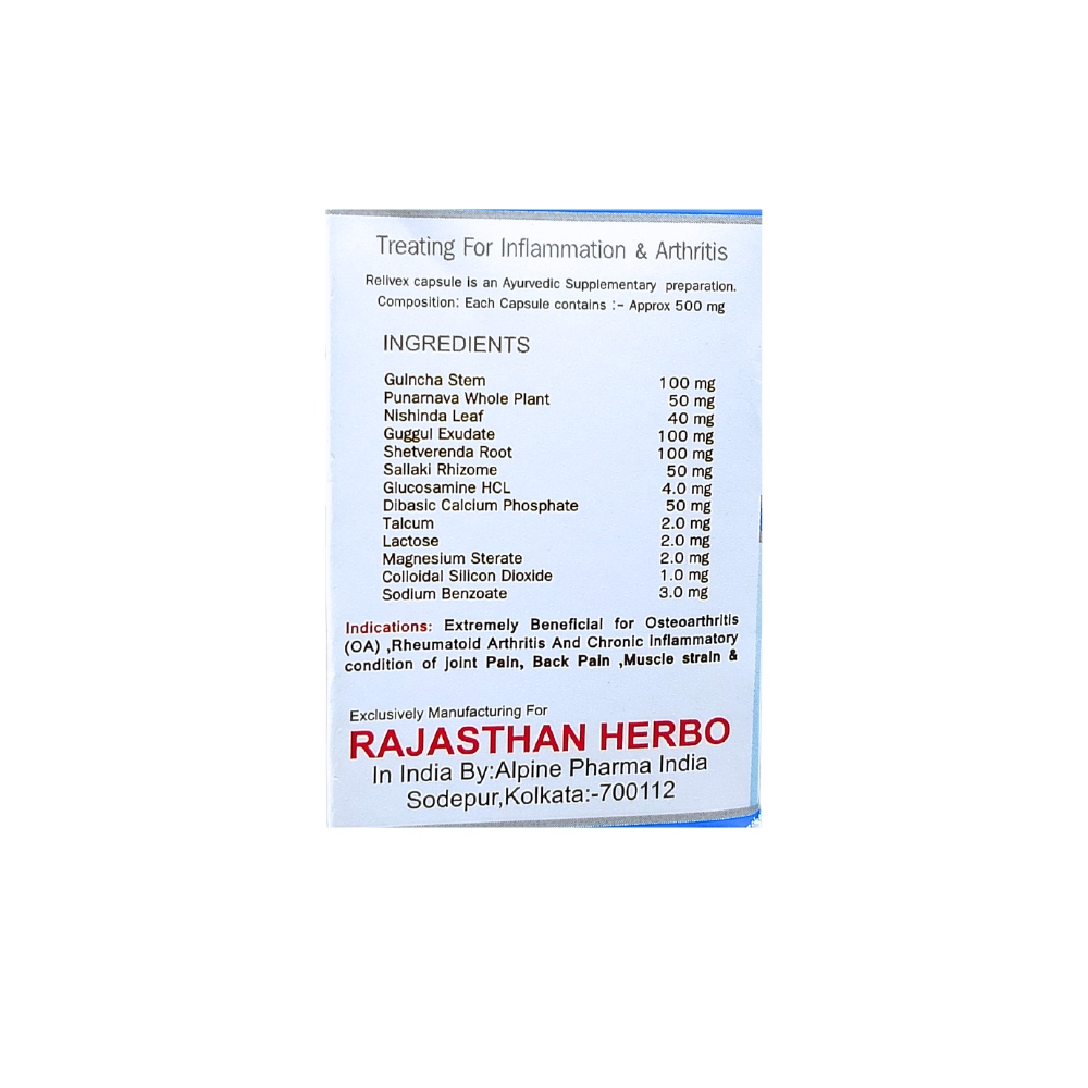 Ayurvedic Reli-vex For Osteoarthritis, Rheumatoid Arthritis, joint pain, Back pain, body pain, muscular pain