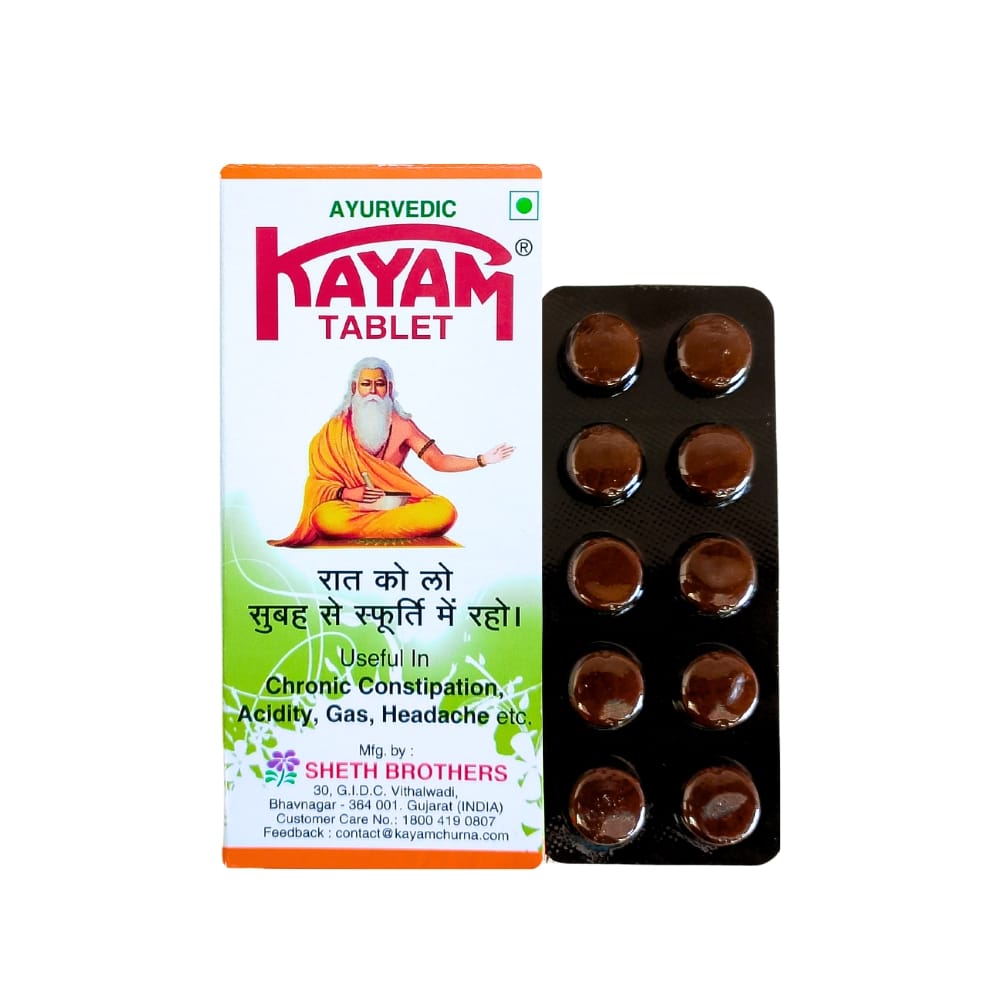 Chronic Constipation & acidity Cure Kayam Tablet for Improves digestion. is a natural herbal supplement specifically formulated to provide relief from constipation and promote regular bowel movements. These tablets can be beneficial for keeping your digestive system healthy. By taking a Kayam Tablet regularly, you may find reliable relief from constipation, making your stomach feel comfortable and at ease.