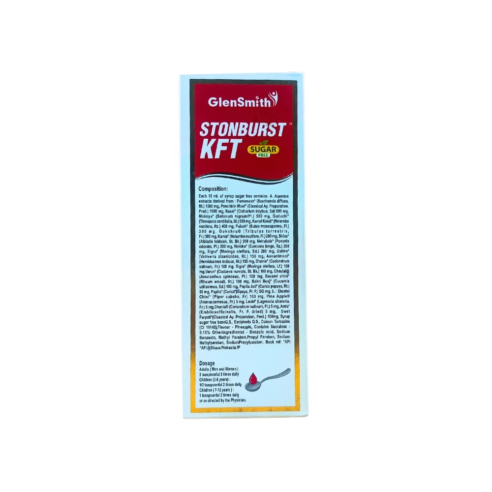 Glensmith Ston Burst KFT 200ml For Removing Stones Helps Kidney And Urinary Bladder Care it help Urinary Tract Infections, Burning Micturition, Poor Renal Functions, Urinary Disorders, Crystal Luria