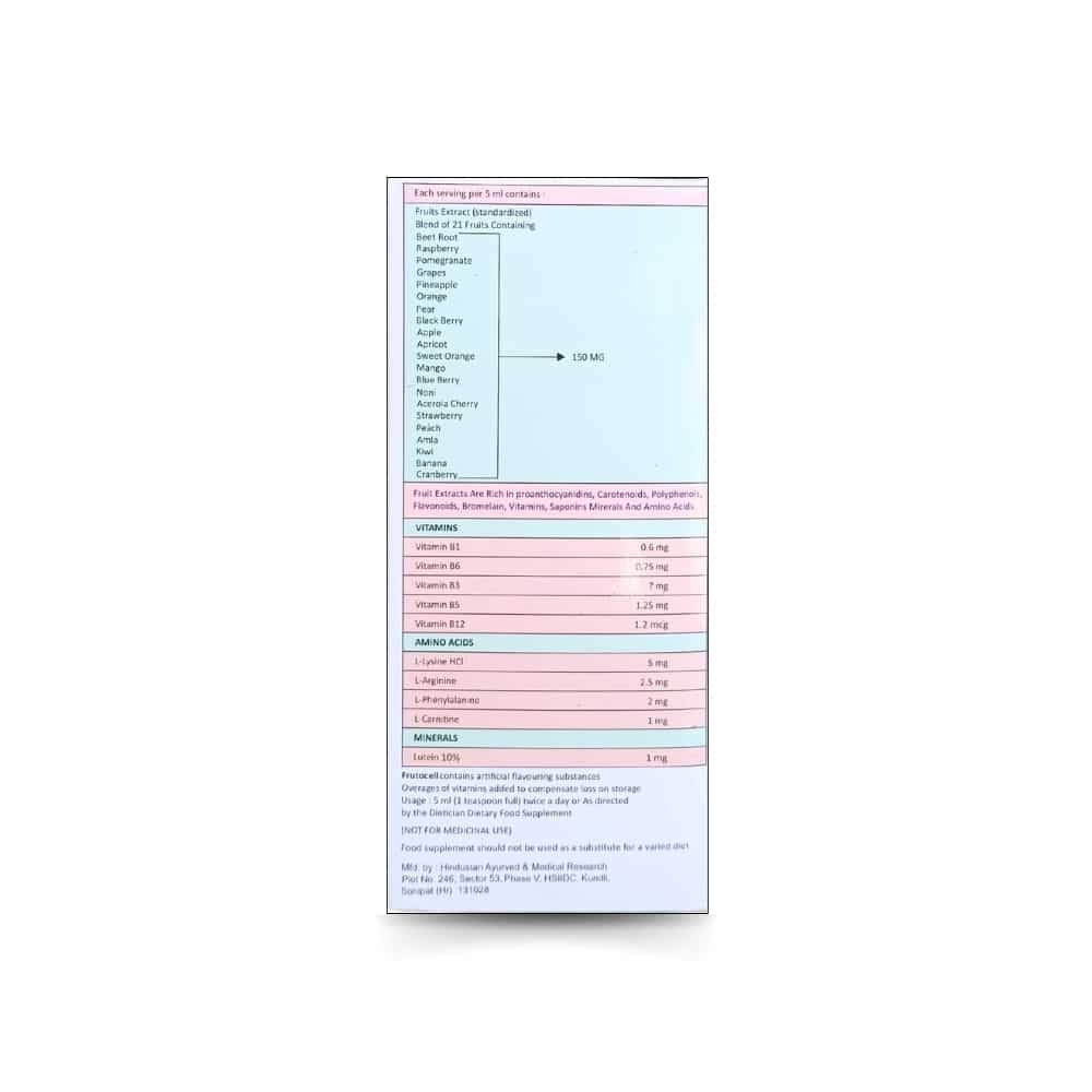 Medcell Frutocell Syrup For Antioxidant It is used to treat and prevent vitamin and mineral deficiencies. It helps to protect the body from damage, improving immunity, metabolism and body functions. It boosts the immunity of the body and improves overall well-being.